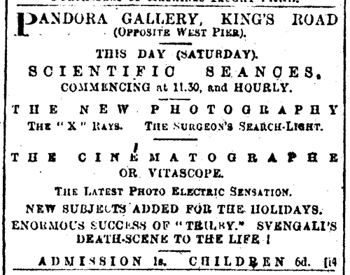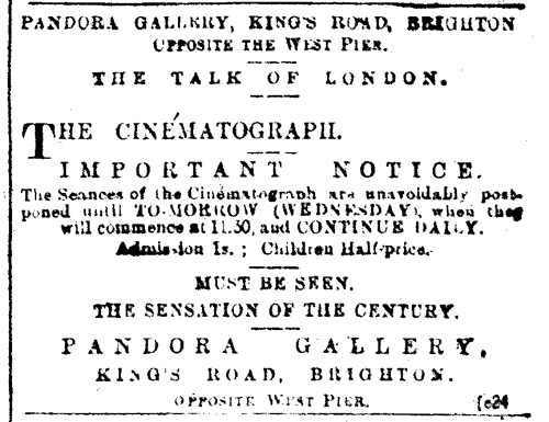 1896 March 25 The first film show in the UK outside London is held at the Pandora Gallery.