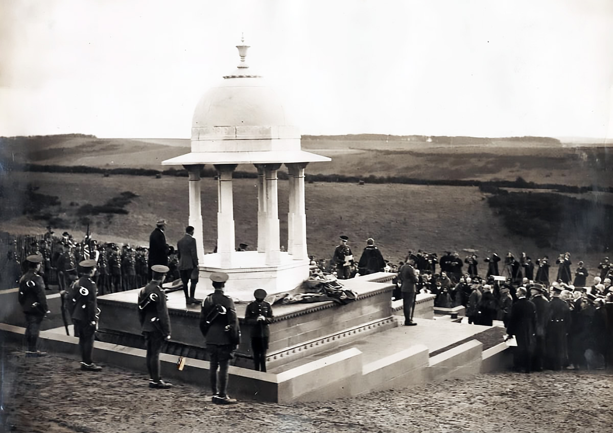 A23 | See London Road, Patcham By-pass, Preston Road. The Chattri is an Indian war memorial, built in open downland to the east of the road and north of A27 on the spot where bodies of soldiers who died in the military hospital at the Royal Pavilion were cremated during the Great War. Sir Samuel Swinton Jacob oversaw the project. Designed by E C Henriques and built in granite and white Sicilian marble by the Manchester firm of William Kirkpatrick Ltd, it was unveiled by the Prince of Wales (later Edward VIII) on 1 February 1921. Grade II listed1. A caretaker's cottage was built in 1923 but demolished by the early 1930s. 1 ![]() ![]() ![]() 1: The Chattri at a military service; 2: The Chattri; 3: The Pylons. |