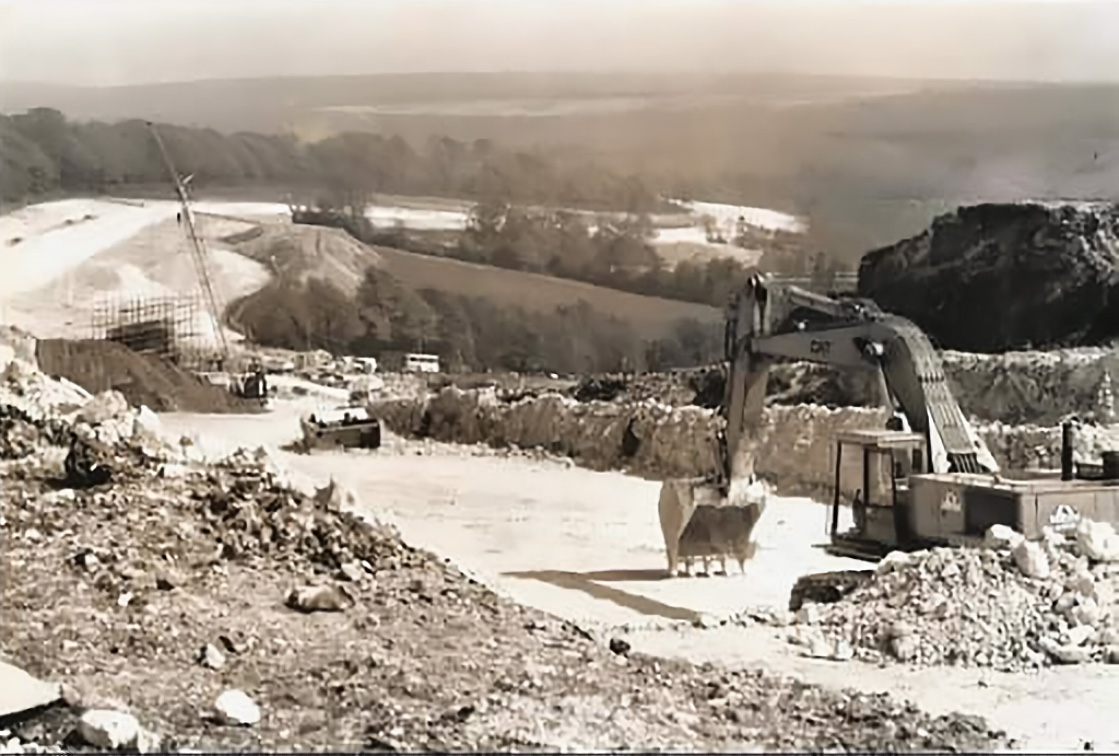 A27 | Brighton by-pass. Earthworks and lynchets on land owned by Brighton & Hove City Council either side of the road north of Mackie Avenue and near Eastwick Barn are a scheduled monument1, currently on Historic England's at-risk register, in the South Downs National Park. ![]() The A27 under construction. |