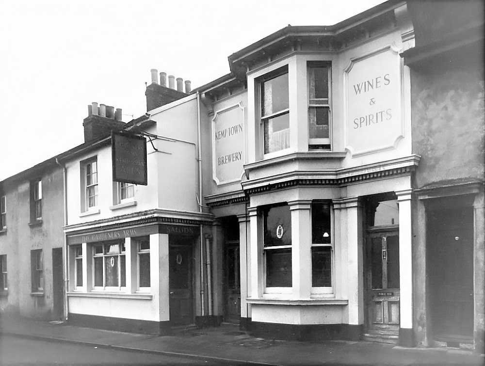 Mostly built in the 1860s east from Belgrave Street. Numbering is sequential: west to east along the north side, returning west to east along the south side. Additional numbering of new builds 6 June 18951. The section between Queen's Park Road and West Drive was given the name 12 December 19502. There were 12 PHs or beerhouses at various times. NORTH SIDE (west to east) —Here is Albion Street. Pedestrian access only here. —Albion Place was here, now Phoenix Rise. ph †4, The Good Intent opened in 1854 and closed in 1937. It was later demolished. ph †8, The Malt & Hop Tavern opened in 1854 and closed in 1917. —Here is Newhaven Street. This area was destroyed by bombing in September 1940 [see below]. —Lewes Street was here. ph †14, The Laundry Tavern was here from 1872 to 1927. —Here is Belgrave Street. [ph] 20 was the Spread Eagle, which opened in 1864 and became a shop c2013. —Here is Newark Place. —Here is Jersey Street. [ph] 28 was the Albion Inn, which opened in 1864 and became residential 2014. 30-31 date from 1893, 31 being a former corner shop. —Here is Grove Street. 32-34 date from 1893, 32 being a former corner shop. —Here is Holland Street. 38 is a former corner shop. —Here is Scotlland Street. 49 was formerly a shop, which featured in the film Lady Godiva Rides Again (1951) [below]. —Here is Quebec Street. —Here is Montreal Road. [ph] 62, Montreal Arms [below] opened in 1869 and was locally listed in 2015. The ground floor is faced with green tiles, typical of the Portsmouth & Brighton United Breweries style of Stavers Tiltman renovations, this from 1934. The owner started to hack off the tiles in March 2022 and was ordered to reinstate them, confirmed by the planning inspectorate in July 2023. —Here is Toronto Terrace. †Albion Hill Home. Misleading name sometimes used for Brighton Home for Female Penitents in Finsbury Road. —Here is Queen's Park Road. 1 ![]() ![]() ![]() 4 ![]() ![]() 1: Albion Hill east from Albion Street; 2: bomb damage south of Belgrave Street, September 1940; 3: Albion Hill from the corner of Quebec Street (from Lady Godiva Rides Again); 4. 28, Albion Inn; 5: 62, The Montreal Arms. SOUTH SIDE (east to west) 73-84 date from 1895. —Here is Windmill Terrace. 87-115 date from 1895. —Here is Chate's Farm Court. —Liverpool Street was here, now John Street. ph †126, The Obed Arms [below] opened by 1885, when the land was owned by Willett, and closed in 1947. It was still standing but boarded up in 1965. Obed was the grandfather of King David and therefore an ancestor of Jesus Christ. Why this namw=e was chosen is unknown. —Dinapore Street was here. —Here is Ashton Rise. —Cambridge Street was here. —Ashton Street was here. ph †137, The Sir John Falstaff was here by 1854 and closed in 1947. —Richmond Buildings was here. Thornsdale. Part of the Albion Hill redevelopment stage 3, it has 45 flats on 12 storeys. It was designed by borough engineer D J Howe and built by Rice in 1961-1963. —Here is Albion Street. ![]() 1 ![]() ![]() 1: The steep slope of Albion Hill; 2: 126, The Obed Arms. |