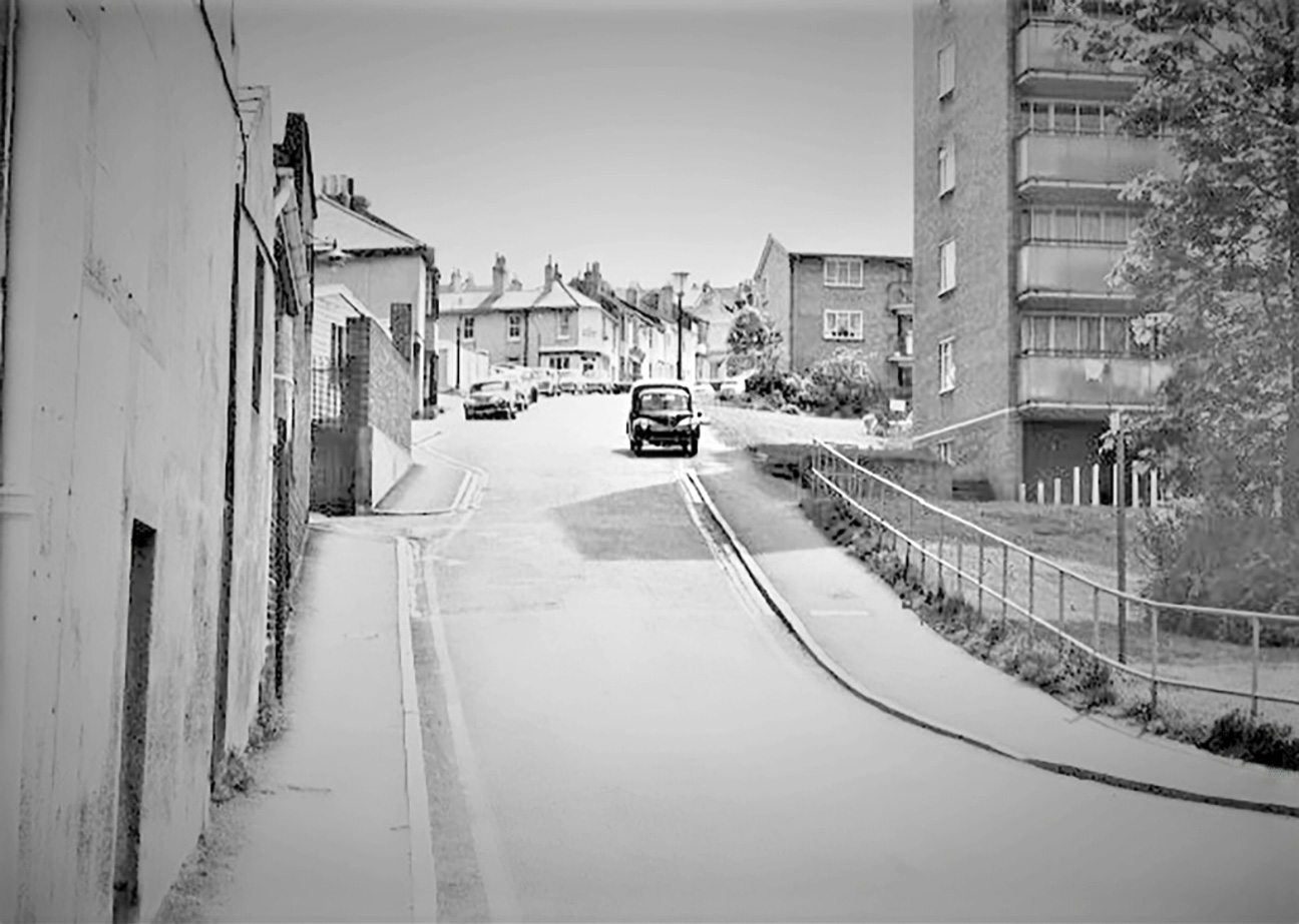 A non-descript half-crescent built to contain tower block development on the site of Claremont Place/Row/Street. The architect was the borough engineer D J Howe and construction by Rice. (See also Grove Hill.) Ashton Lodge has 18 flats. Courtlands has 46 flats. Saxonbury was part of the Albion Hill redevelopment stage 1, designed by borough engineer D J Howe and built by Rice, has 45 flats in 12 storeys. ![]() Apartment blocks under construction seen from John Street in 1960 [RS James Gray Collection]. |