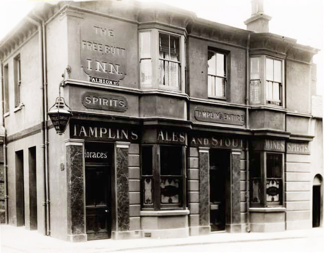 At 4 Richmond Street, leading to Waterloo Street North. The street was formerly known as Richmond Row until c1840. Possibly renumbered between 1848 and 1859. The east side was demolished in 1959 and redeveloped c1960. 1-6. 14a-e, 15 and Blake Court are in the Valley Gardens Conservation Area. ph †7-9, The Albion Inn1. No 9 was rebuilt as a medical practice opened by Edwina Curry MP. 12 was the Albion Brewery. ph 22/25, Free Butt Inn is listed in Fo1848 but probably dates from the early 1820s, when Tamplins brewery was built—its name is in the render of the current building. It was rebuilt by George Tuppen in 1876 and altered by Arthur Packham in 1936. It closed in 2010. Brooke Mead is a block of 45 council 'extra care' affordable-rent flats, built by Wilmott Dixon and completed in December 2017. It replaced low-rise council properties vacated by 2010. 1 ![]() ![]() 1: Albion Street; 2: Free Butt Inn |