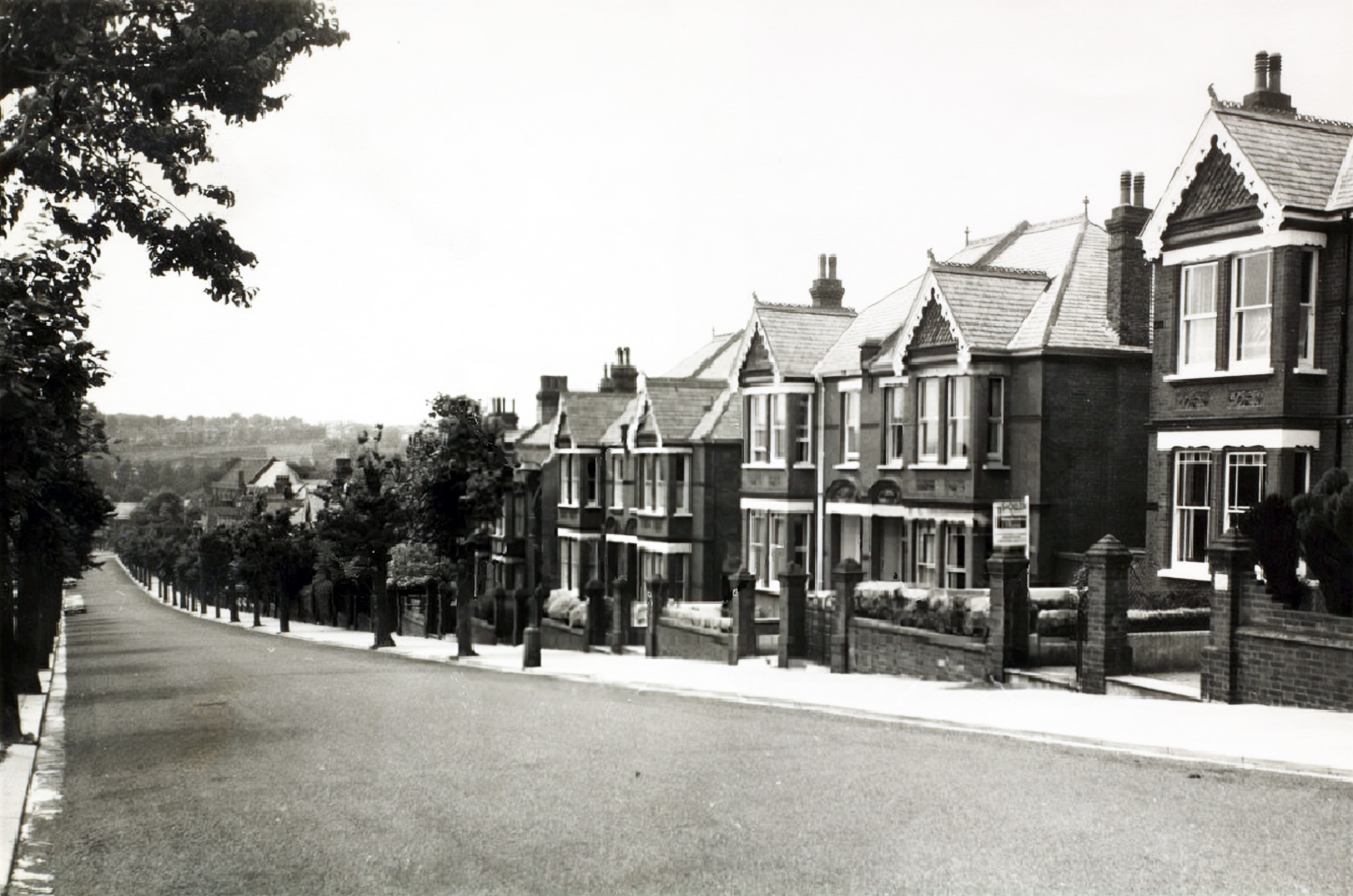 Mixed housing, mostly Tudorbethan detached. | Ke1947— | |