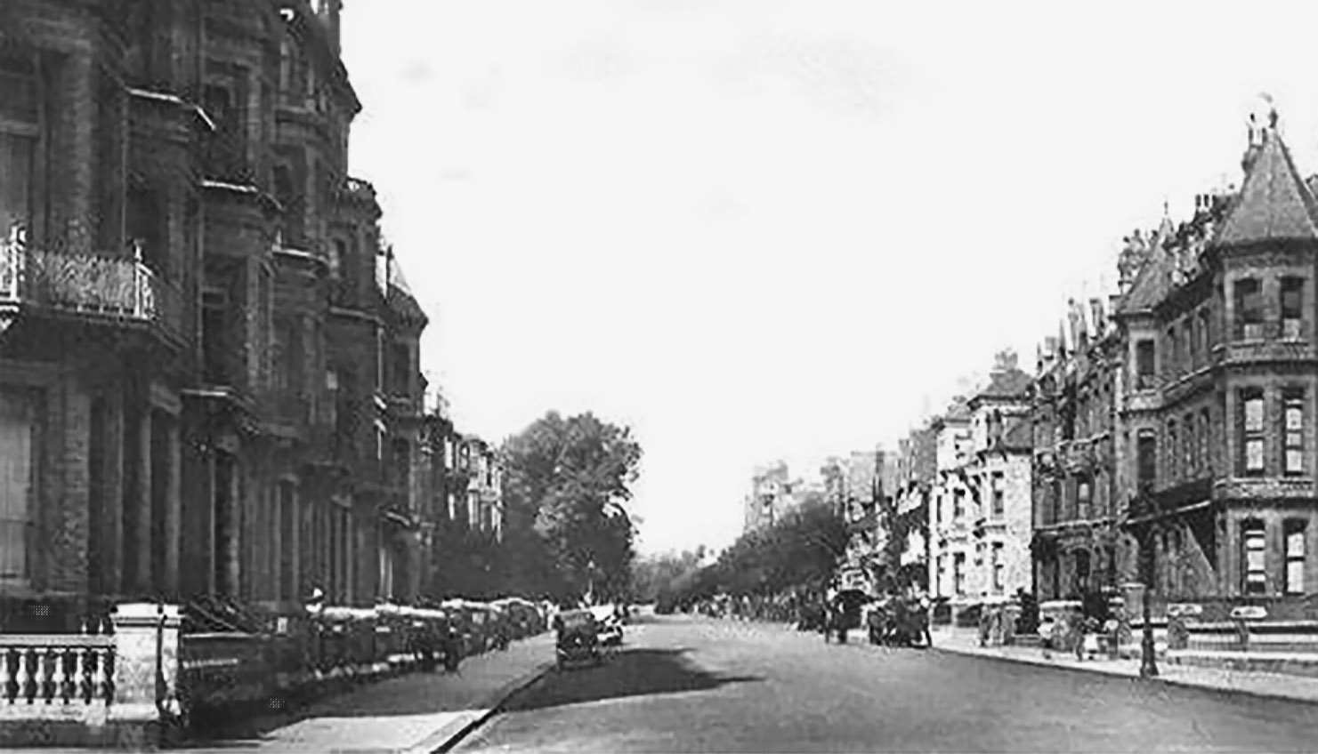 One of four sequentially numbered avenues running between Church Road and Kingsway, parallel with and on either side of Grand Avenue. The land was part of more than 40 acres let by the Stanford Estate in 18712. This and neighbouring Third Avenue were built on the site of the Royal Brunswick Ground, also known as C H Gausden's Ground, the home of Sussex County Cricket Club from 1848 to 1871. 'Houses building' in Pa1881. Hamilton Mansions between 15-16 King's Gardens and 2 Fourth Avenue. 28, The Hove Club was designed by Samuel Denman in 1897, built by J Barnes & Son and opened in 1898, moving here from previous premises in Grand Avenue. The first floor was converted into a casino in 1978. Grade II listed with its attached walls and railings1. 35 was the residence of Sibyl, Marchioness of Queensberry (1848-1937) and her son Lord Alfred Douglas (see also Nizell's Avenue) from 1925 to 1935. 1 2![]() 1. Fourth Avenue looking north from south-east end; 2. Looking north from the south-west corner. |