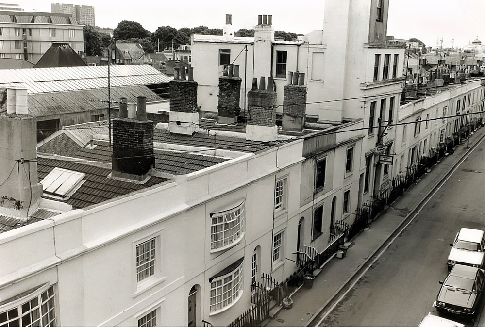 | Rose Hill Terrace | Built early 1850s. The eastern end was separated and became Rose Hill Close when Rose Hill Court was built in Kingsbury Road. Numbering is sequential from the north-west corner, returning along the south side, but continues in Rose Hill Close (32-44 and 61-68 are omitted). During WW2 a bomb hit the eastern end, which was reconstructed (see image below). 3 was the residence of Harry Sergeant c1929-1931. He was known by his stage name Max Miller as early as 1920 but retained his birth name in directories1. †ph 7, The Duke of Wellington [ph] 31 was The London Arms from c1864 to 1954. It is now a private residence. ph 70-71, Rose Hill Tavern dates from c1864 and was refurbished, including the green-tiled façade, by Stavers Tiltman in 1934 for the Portsmouth & Brighton United Breweries. It has been on the B&H local list since 2015. 84-88 (?) was damaged by bombs and replaced by prefabs that were demolished in 1966. Albert House. 1851. North Cottage. 1851. ![]() Looking west, with the London Arms in the background, construction on the south-east end of Rose Hill Terrace. This was later replaced by Rose Hill Court. |