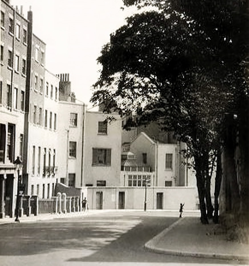 At 37 Russell Square. Now a gated development as a continuation of Regency Mews. |