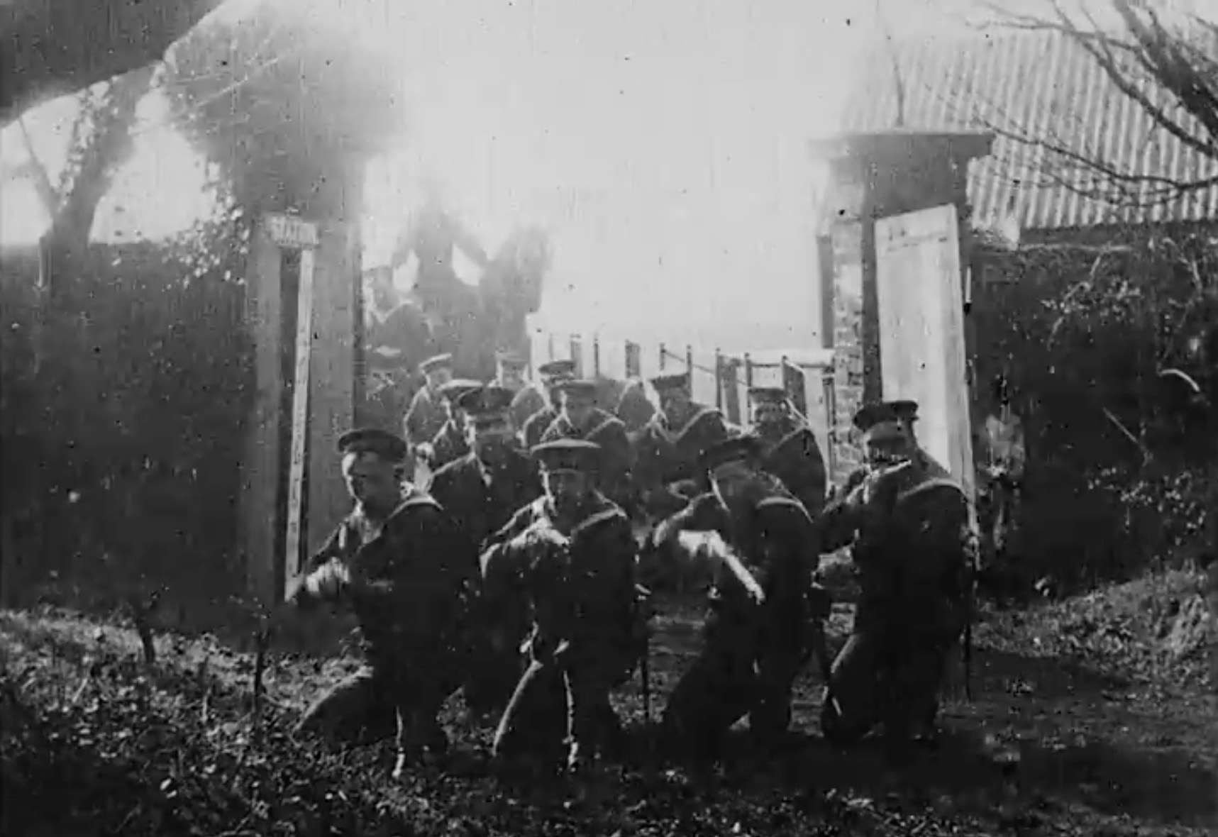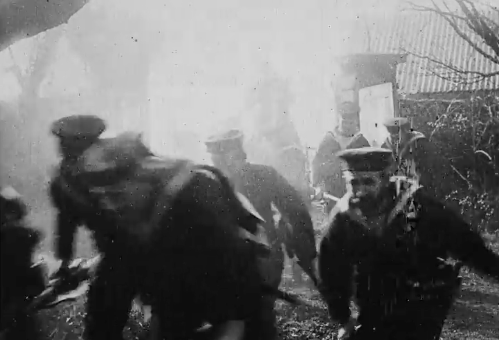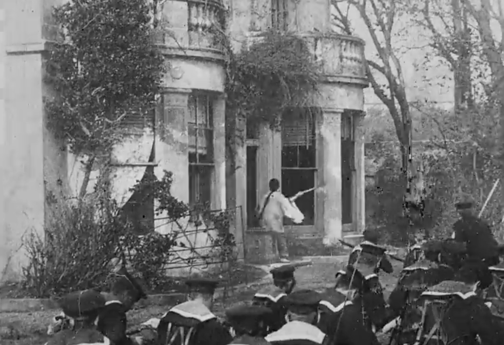 —Almost certainly the most important film made to date and longer than usual at 230ft (four minutes). The dramatic re-enactment of a recent incident in the Boxer rebellion in China. For its time a major production, comprising four set-ups with cutting between each. This is almost the certainly the first film ever to use the principle of what later is known as montage: cutting between shots to heighten the drama and to show reverse angles. Historian John Barnes wrote that 'this is one of the key films in the history of the cinema and had the most fully developed narrative of any film made in England up to that time'. The film was shot at the soon-to-be-demolished Ivy Lodge (where Vallance Gardens is now) with a cast of more than two dozen, including Ernest Lepard (newly-appointed manager of the Alhambra Opera House and Music Hall) as the missionary, Mr James and Williamson's 16-year-old daughter Florence, who worked at the time as an assistant in his shop, and authentic looking troops. (November, 230ft.) The film was released in the USA on 28 November 1903.