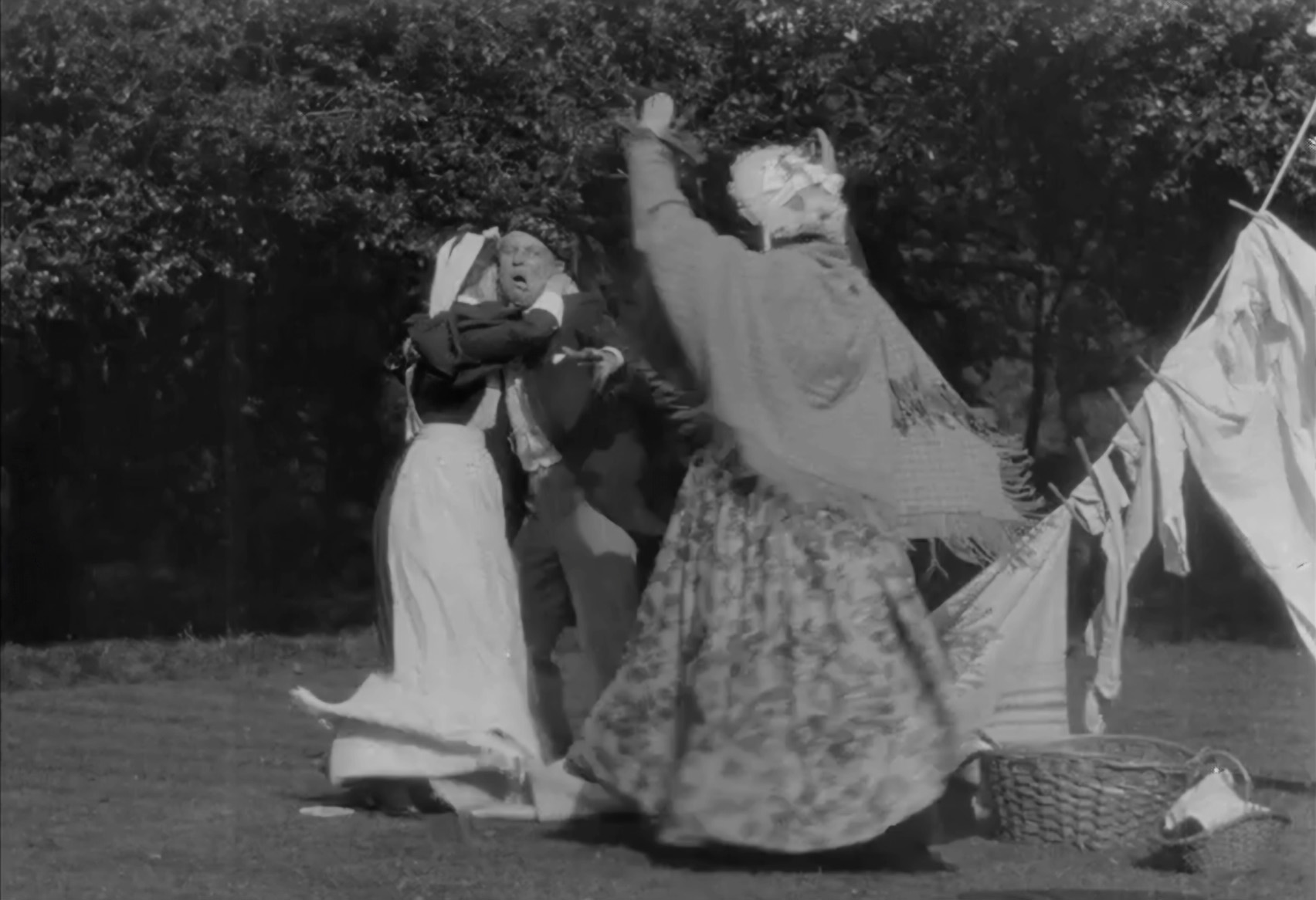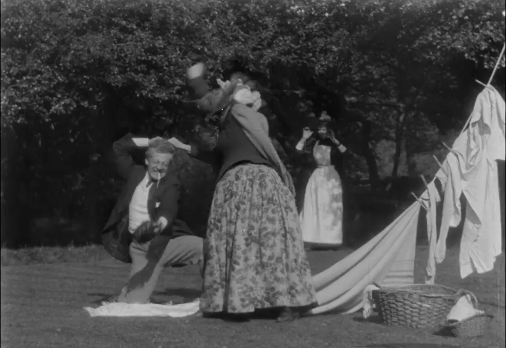 — A man is caught canoodling with the maid and thrashed by his wife, featuring Tom Green, Nellie Green and Laura Bayley. Possibly 1898 (1 min.).